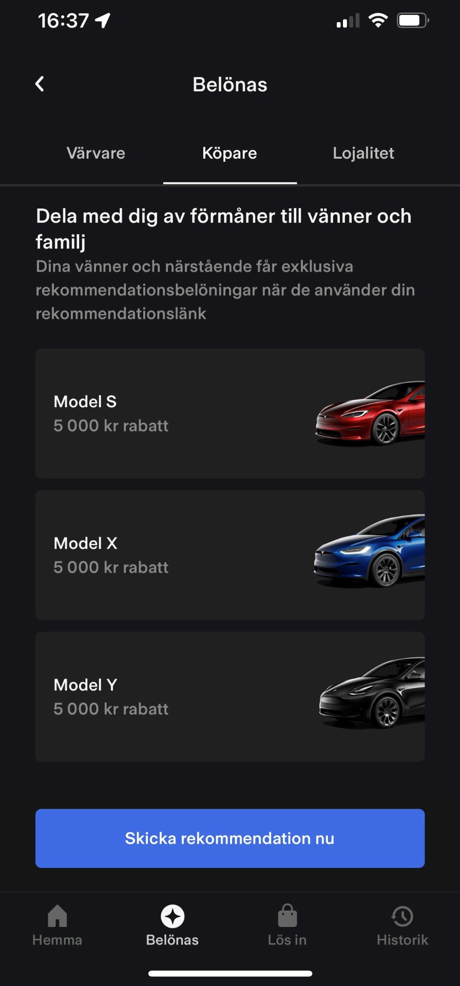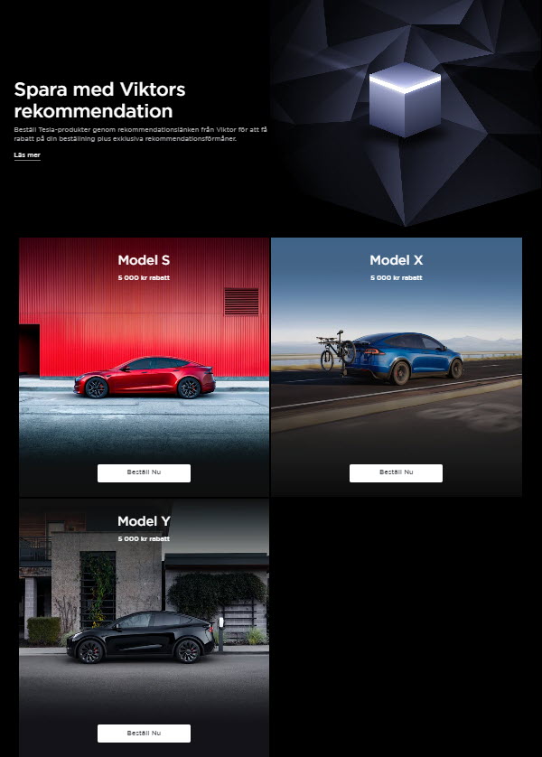 När någon gör ett köp via den här sidan får de en rabatt på sitt köp, och den värvande Tesla-ägaren får krediter som kan användas för att köpa diverse Tesla produkter eller tjänster.